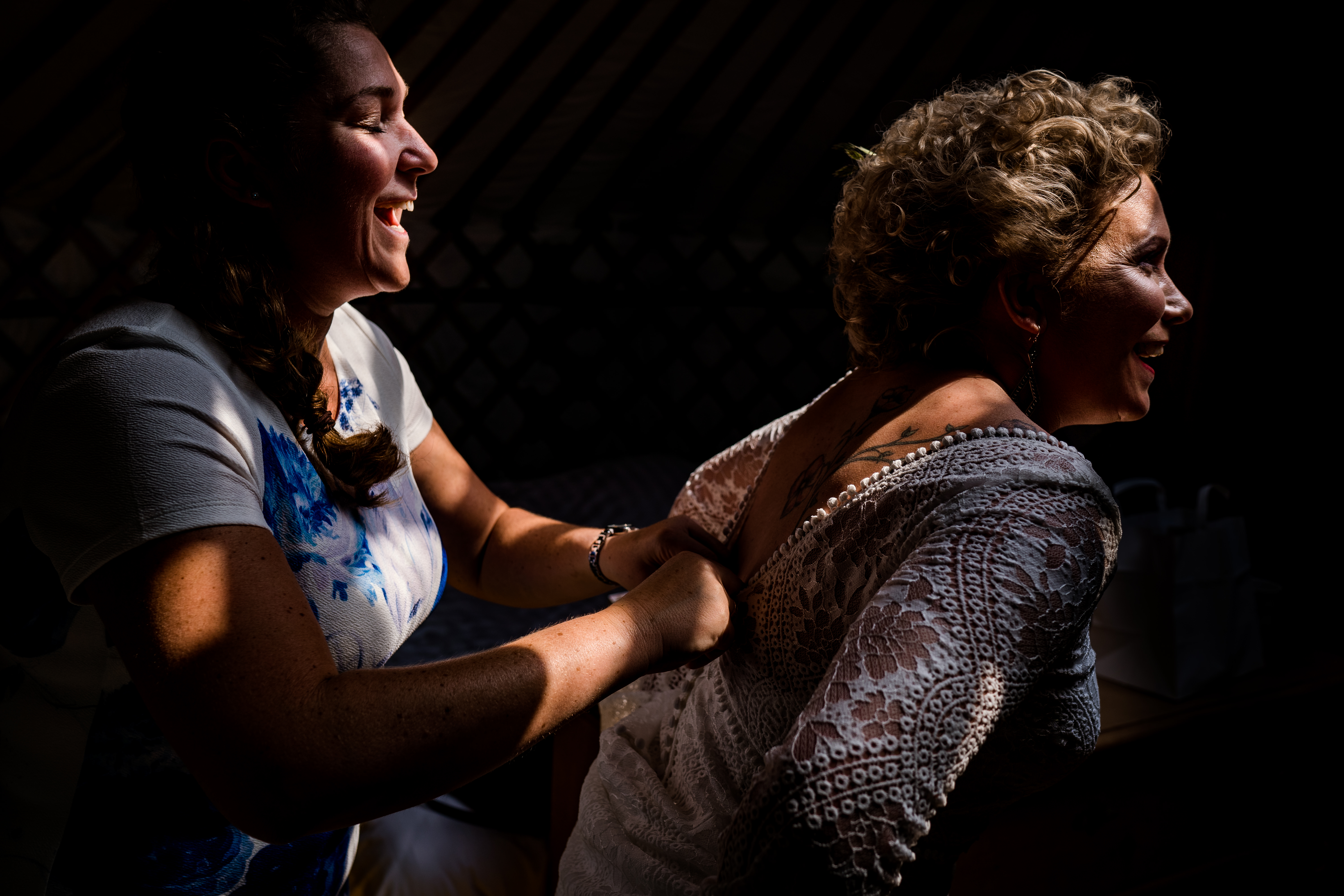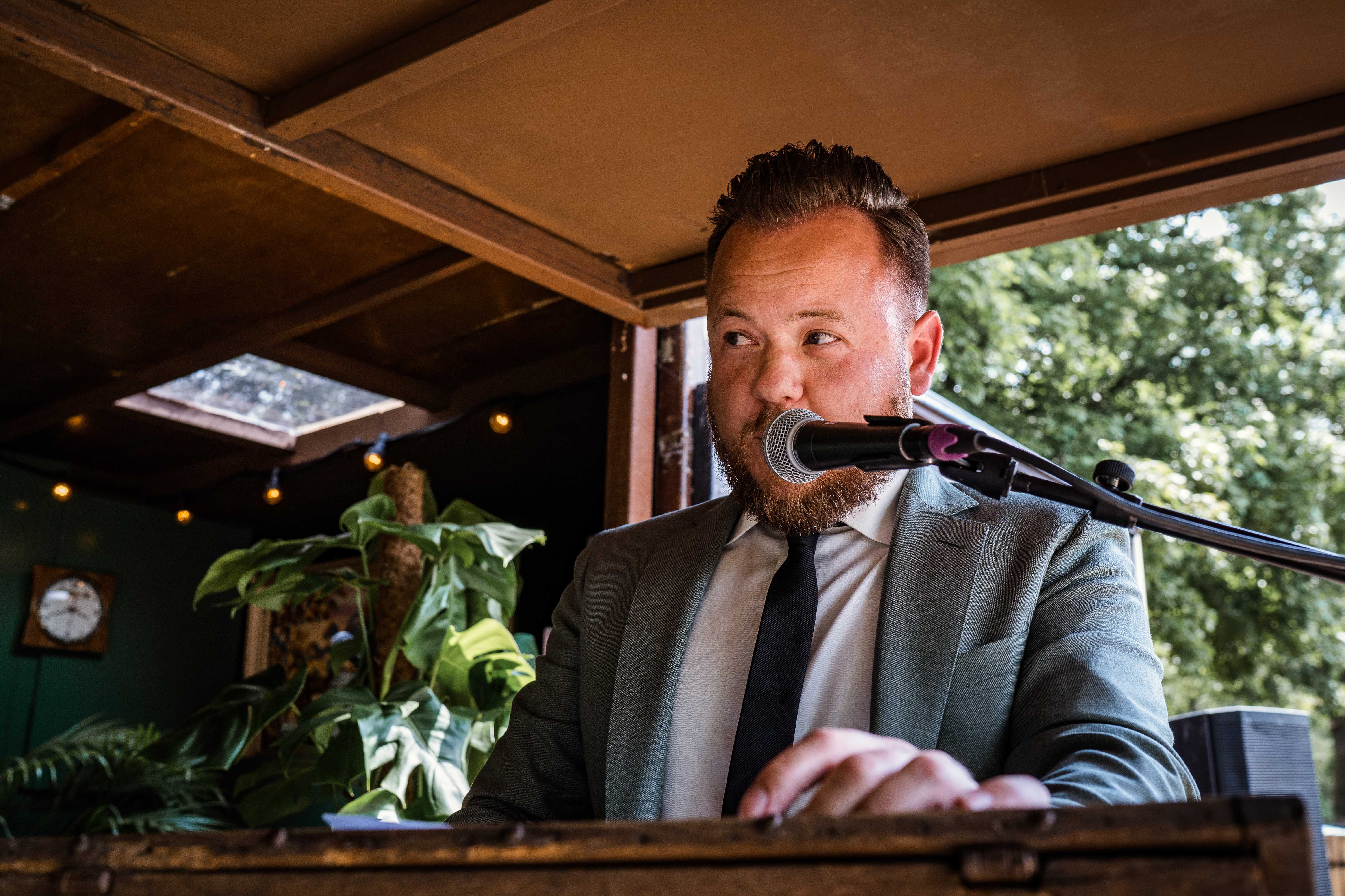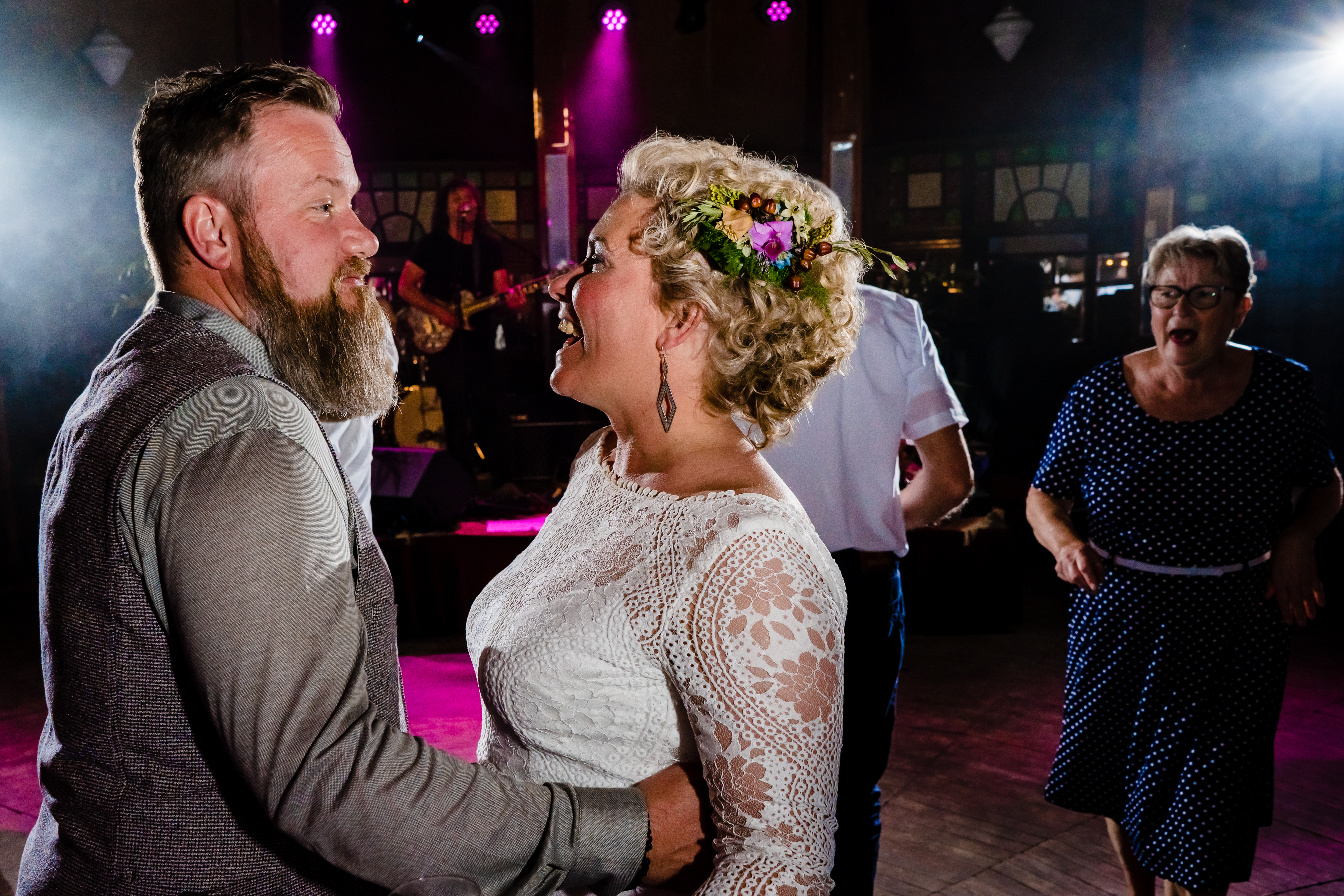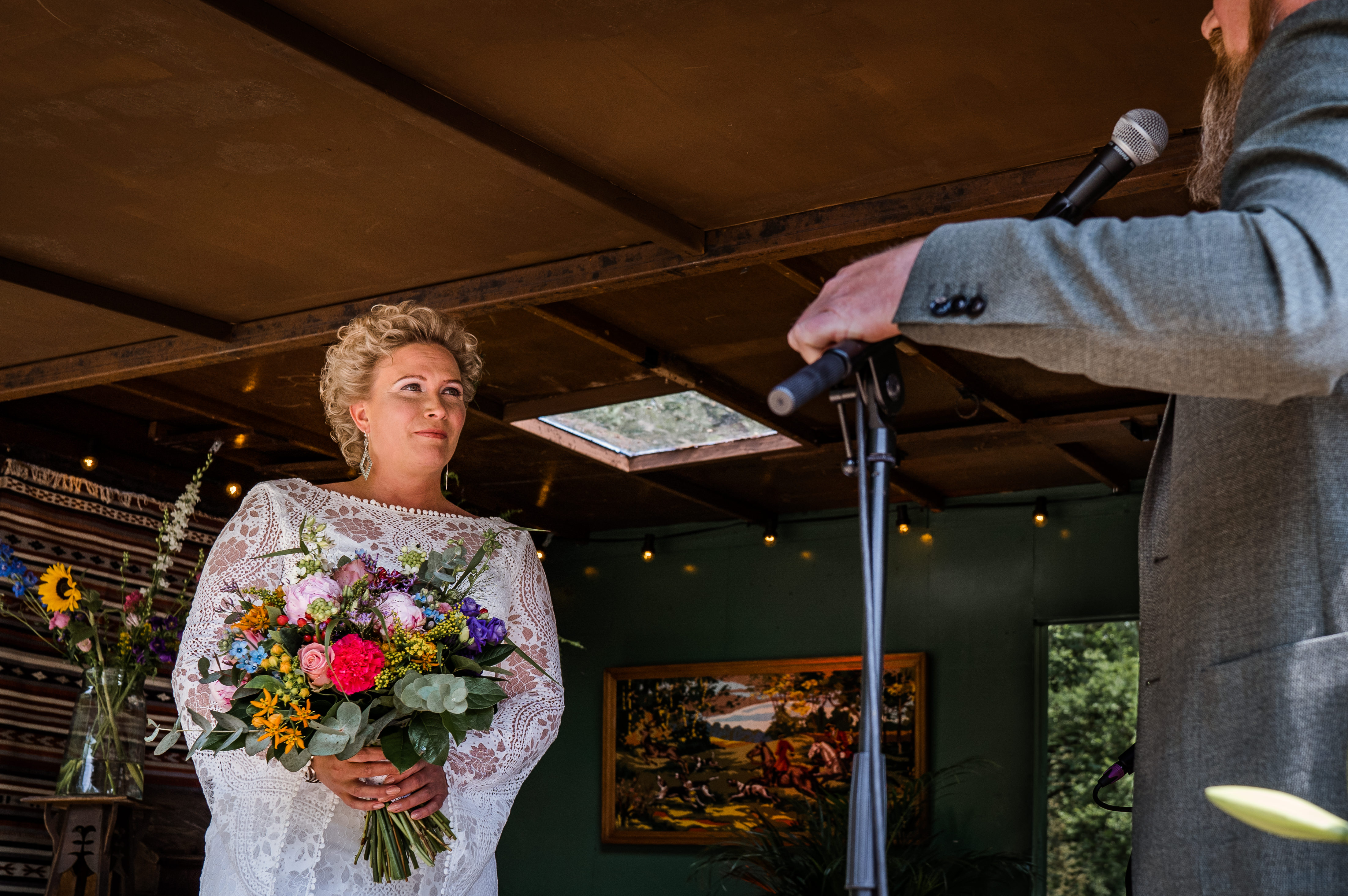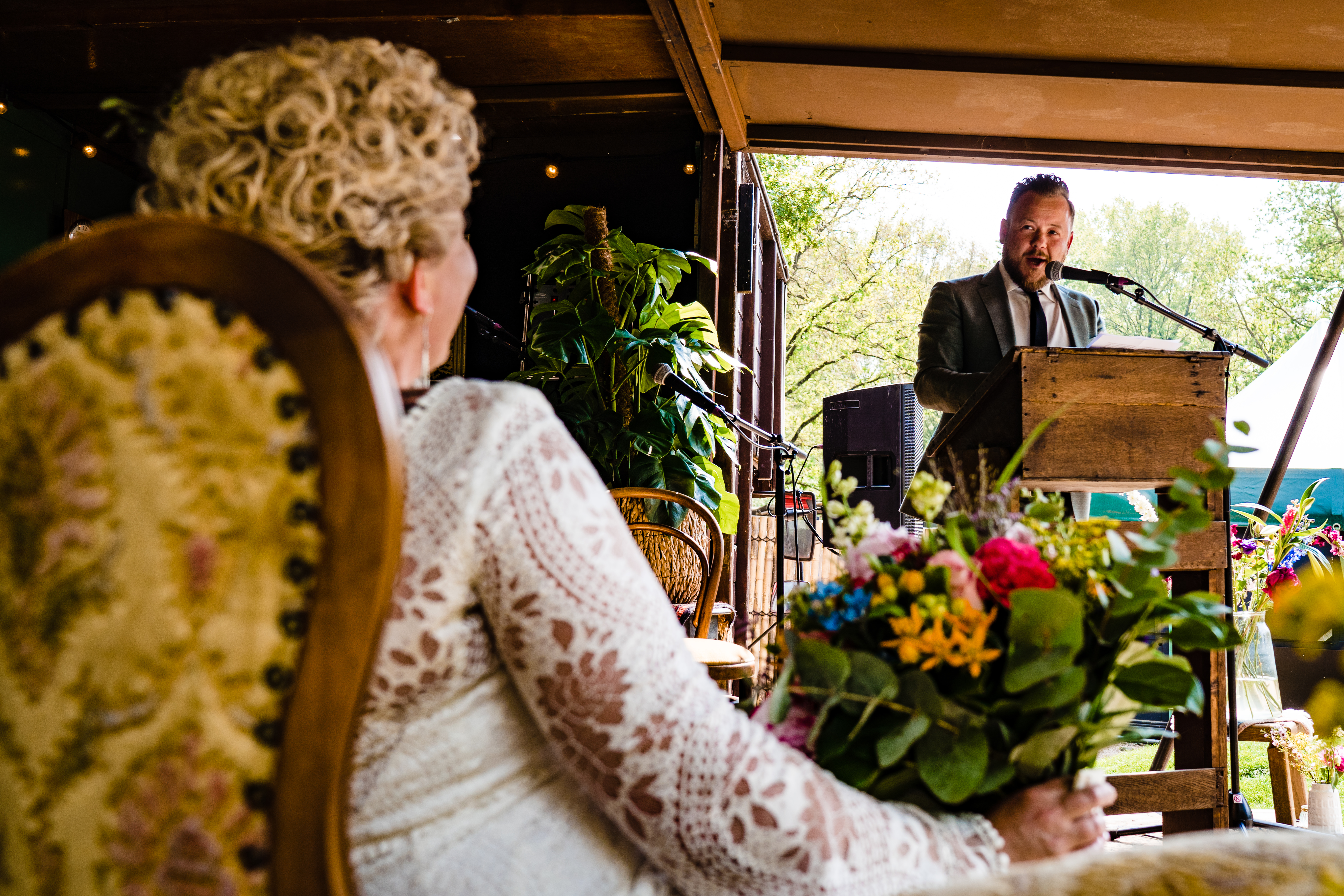 Om de hele ceremonie zo lekker luchtig en informeel mogelijk te houden was één van de vrienden van Gwen en Loek aangesteld tot bijzonder trouwambtenaar voor een dag. Nog zo’n fantastische zet van het bruidspaar! In mijn carrière als fotograaf heb ik veel, heel veel trouwambtenaren meegemaakt. En ik kom ze tegen in allerlei categorieën, maar de allerbeste en leukste ceremonies zijn toch de ceremonies die door een zelfstandig trouwambtenaar of een door een vriend, vriendin of familielid worden voltrokken. Dus ga je trouwen en wil je geen standaard praatjes waar je met een beetje pech een standaard stukje tekst hebt waarbij alleen de namen zijn aangepast dan is een zelfstandig trouwambtenaar of een bijzonder trouwambtenaar voor een dag the way to go!