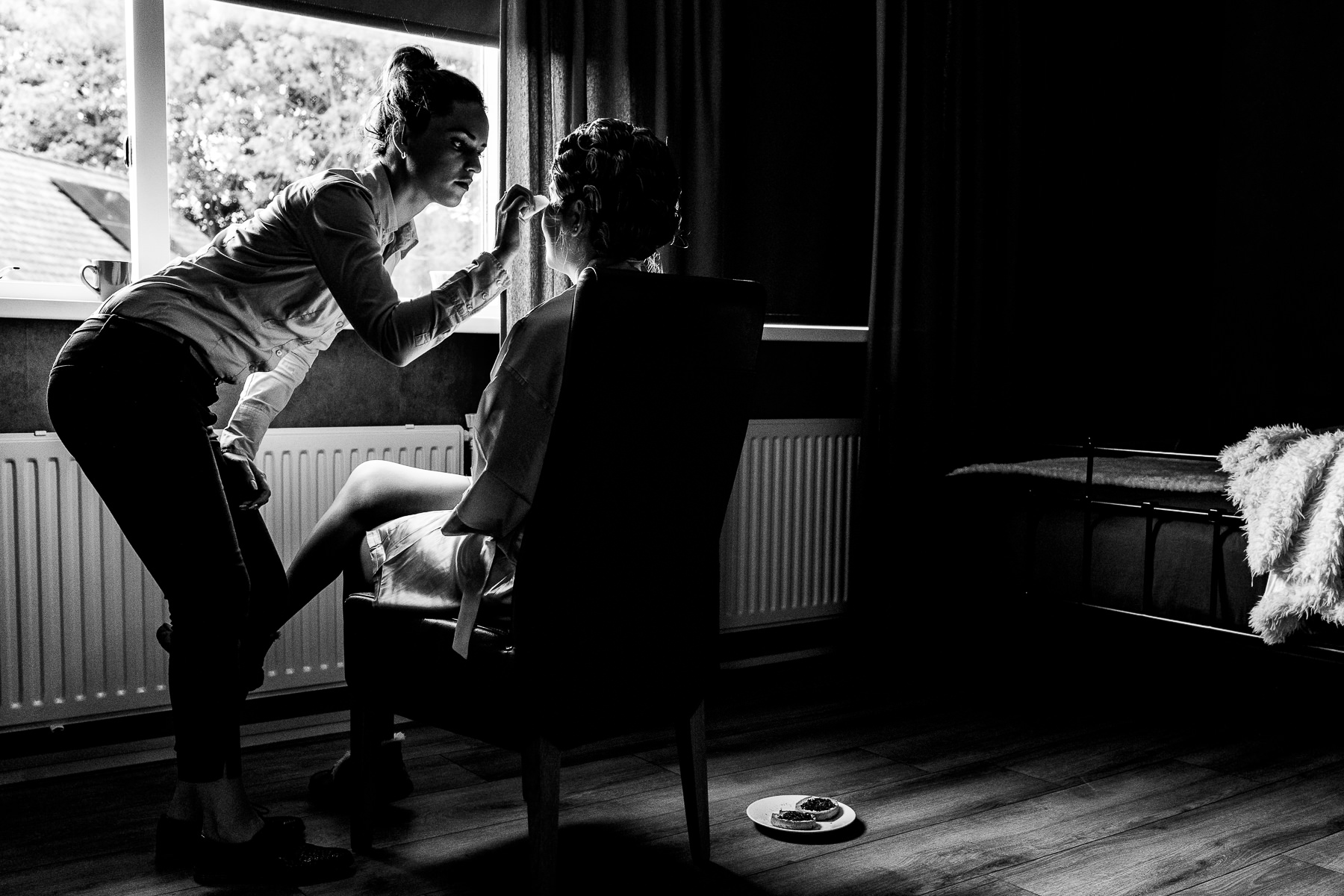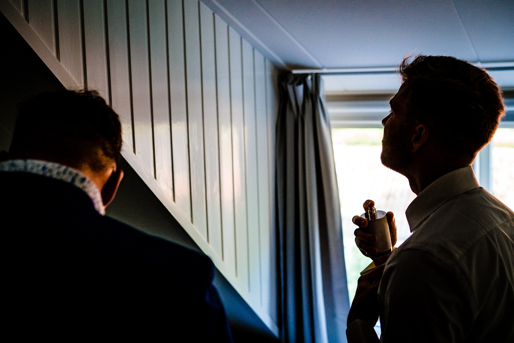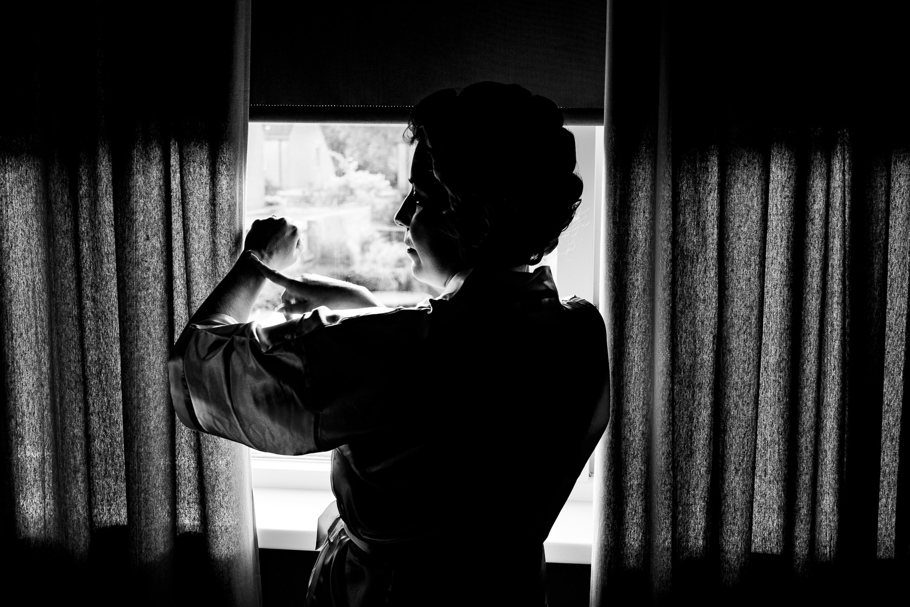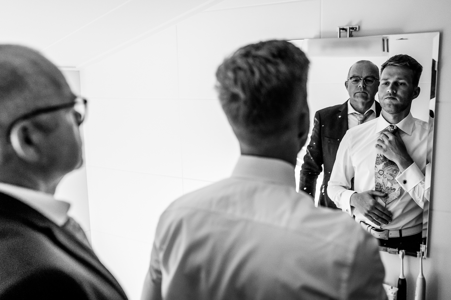 Thijs en Saskia mailden mij vorig jaar met de mededeling dat de reeds geboekte trouwfotograaf Elburg om privé redenen de bruiloft van Thijs en Saskia niet meer kon fotograferen. Oei, dan baal je natuurlijk flink. Denk je alles geregeld te hebben, zegt je fotograaf af…. Maar wat had ik een geluk! Thijs en Saskia hadden daarmee direct besloten om het dan ook maar direct goed aan te pakken (sorry, het zijn echt de woorden van Thijs en Saskia. Ik kreeg ook het schaamrood op mijn wangen toen ik het hoorde). Anyway; de lat was gelegd. Samen met de enorm getalenteerde Henk van Lambalgen als tweede fotograaf die de voorbereiding van Thijs heeft vastgelegd (de eerste vier foto’s en de zwart/wit foto onder de brug zijn door Henk gemaakt) heb ik alles uit de kast getrokken om de bruiloft op een onvergetelijke manier vast te leggen.